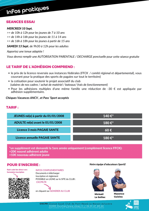 - Section sportive en partenariat avec le collège Noël du Fail de Guichen réservée aux élèves en classe de 4e et de 3e désireux de pratiquer le canoë-kayak ;